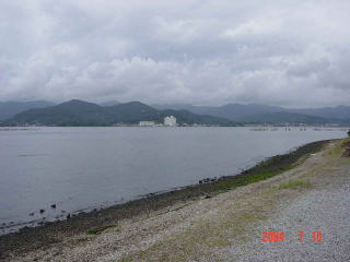 ホテルより対岸を望む。
